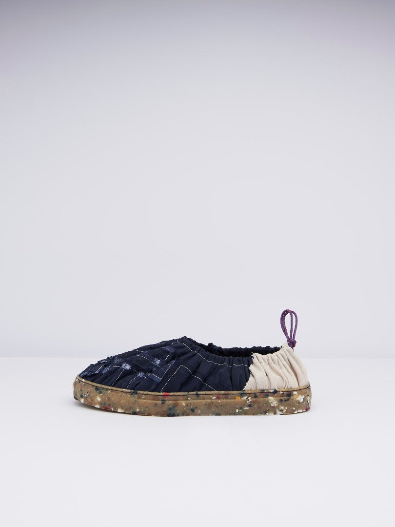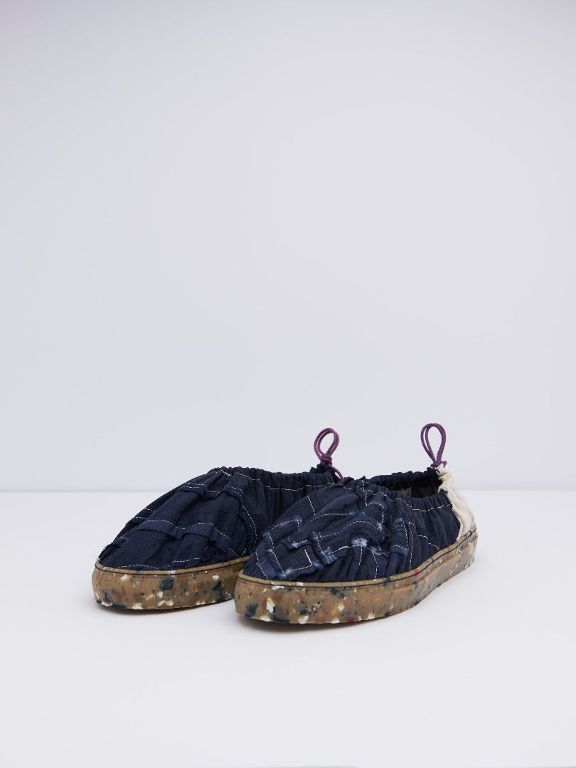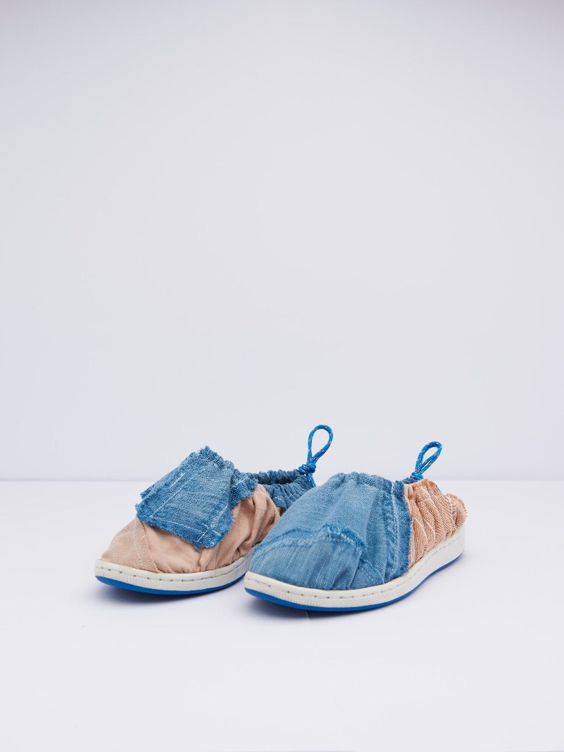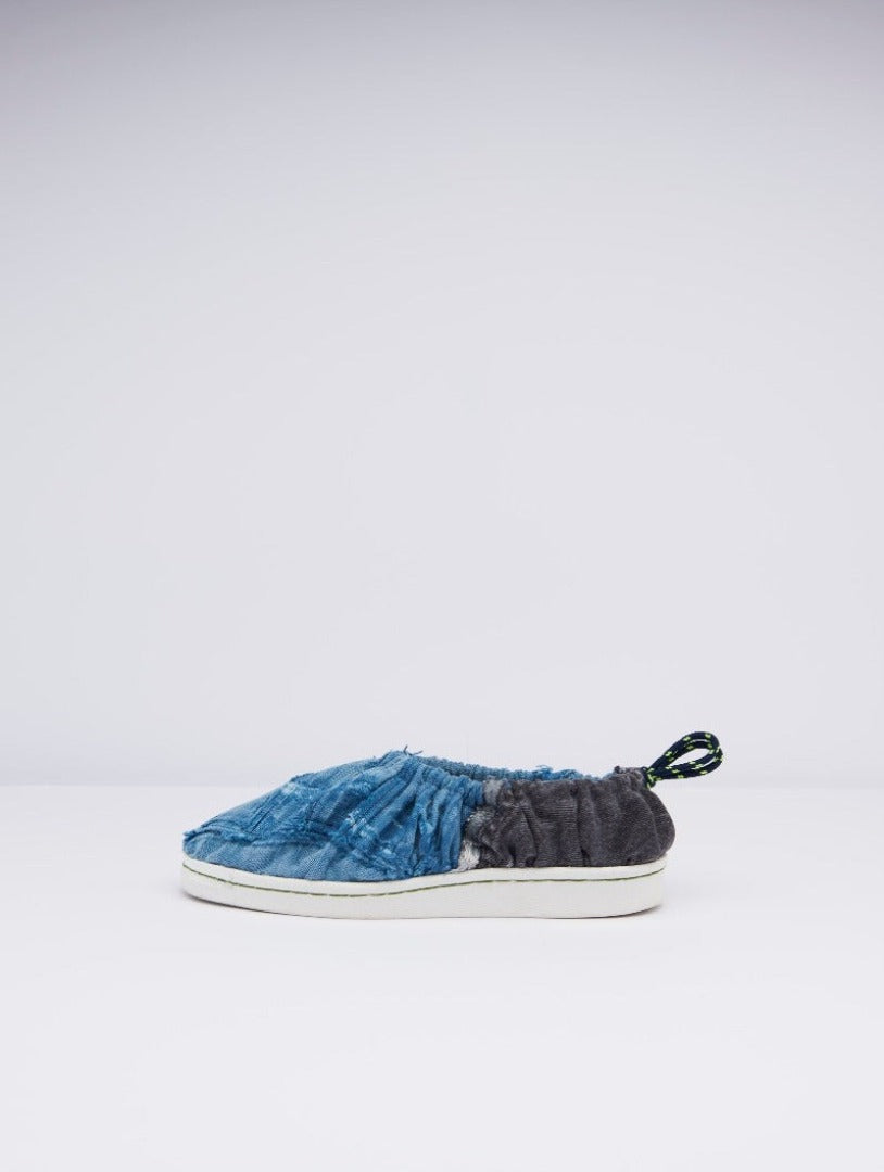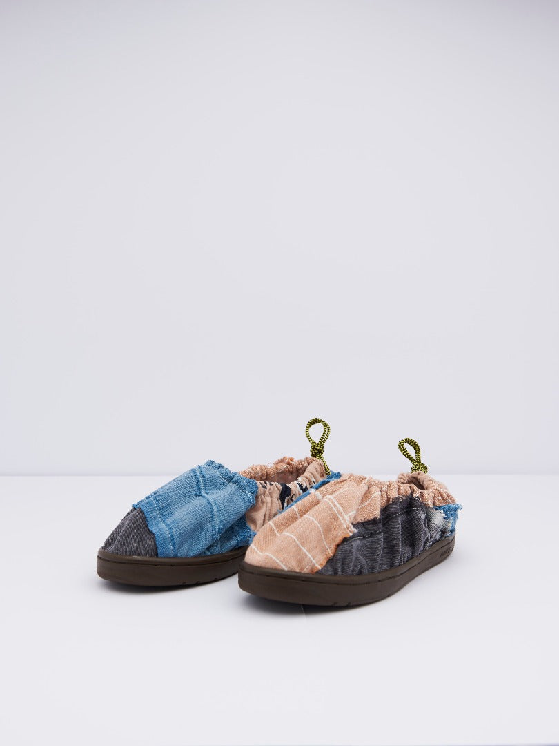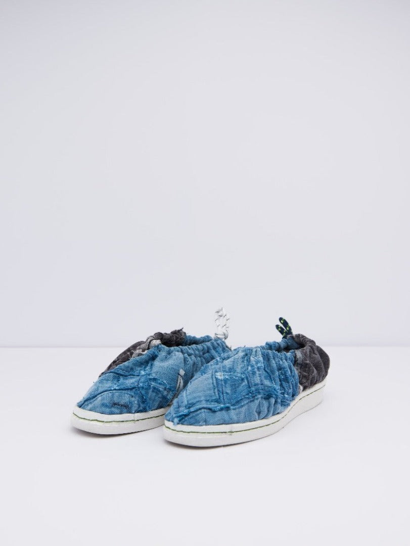 Handmade footwear from unique patchwork fabrics crafted from various upcycled textiles obtained from used clothing. Soles are made from our own recycled or biodegradable materials.