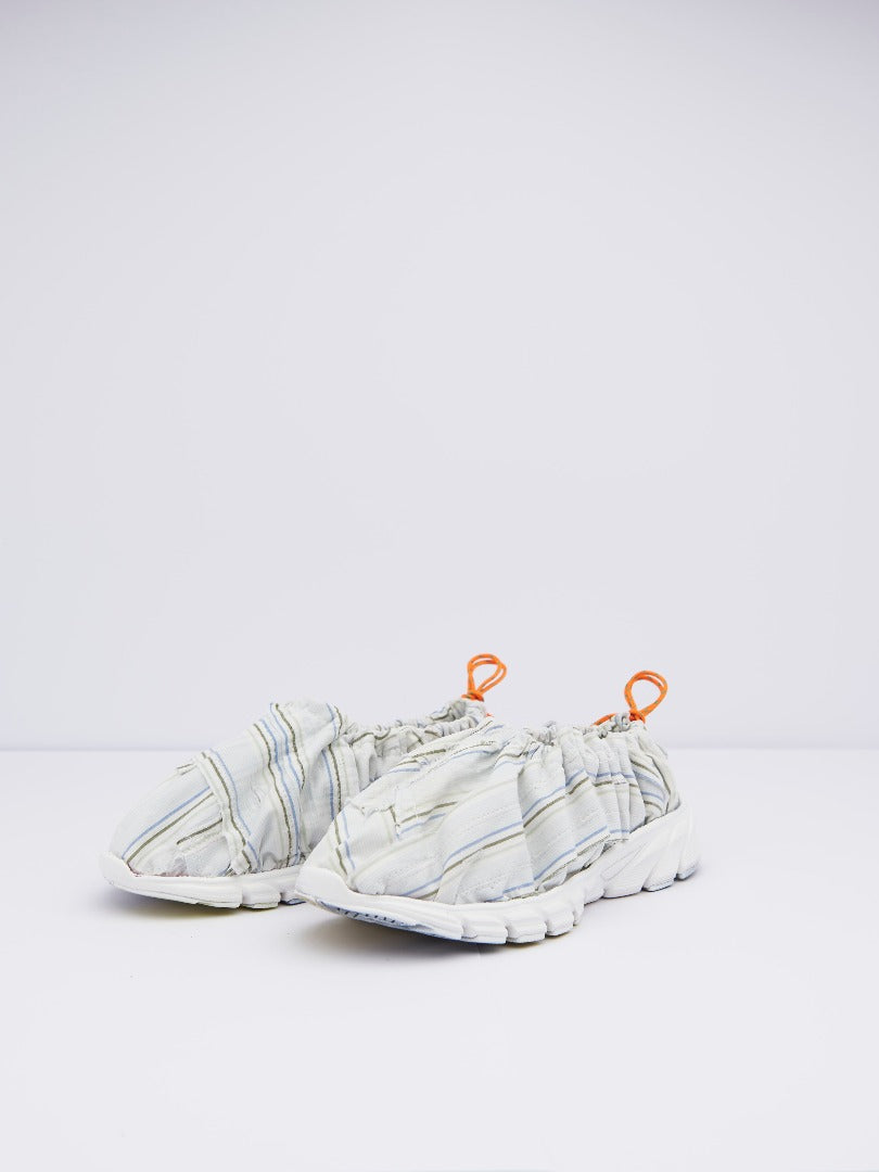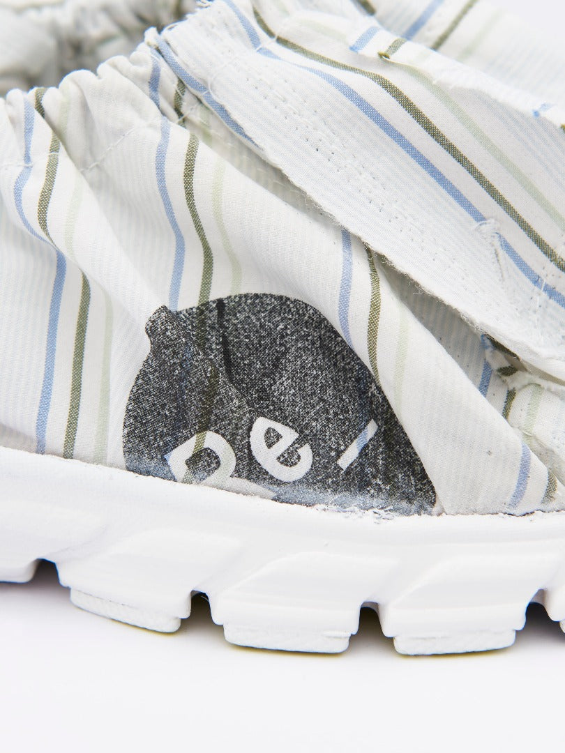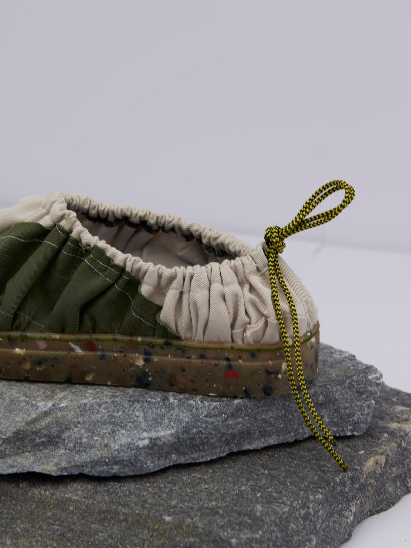 Each shoe is handcrafted using local and upcycled materials, and each pair of footwear produced at Re_ retains the essence of all the components that make it up. Therefore, the newly manufactured product will differ from the images while maintaining the essence of the upcycling artisan work method used. We understand this as a distinctive value, a testament to the unique character of the shoes and their history, distinguishing them from mass-produced items.