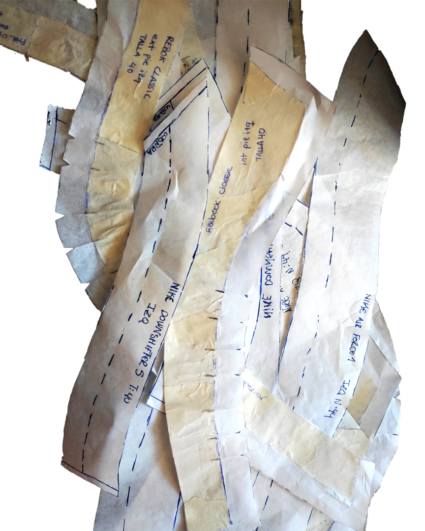 Each shoe is handcrafted using local and upcycled materials, and each pair of footwear produced at Re_ retains the essence of all the components that make it up. Therefore, the newly manufactured product will differ from the images while maintaining the essence of the upcycling artisan work method used. We understand this as a distinctive value, a testament to the unique character of the shoes and their history, distinguishing them from mass-produced items.